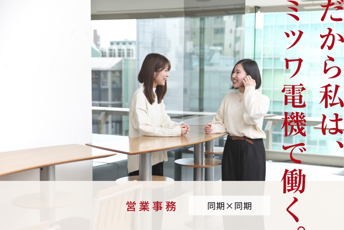 - 先輩たちの姿はいつも参考にさせてもらっています。いつも僕たち若手を気にかけてくれていて、「周りに頼ってもいいよ」とみなさんが言ってくれることが大きな支えになっています。人間関係の良さはミツワ電機の特徴であり、僕がここで働く理由の1つでもあります。営業所はフリーデスクなので毎日いろいろな先輩と話せますし、その仕事の様子を見せてもらうことが勉強になっているなと感じます。